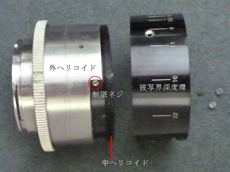 被写界深度環を取り去りますと、外・中ヘリコイドになりました。