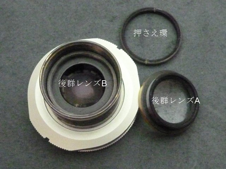 押さえ環を外すと後群レンズA・Bの構成になっていました。