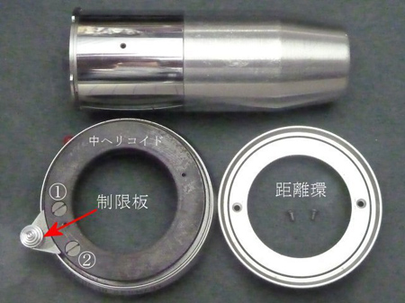 飾鏡筒の中に個体固有の調整座金が入っている。
