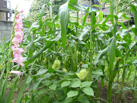 トウモロコシの雌花が上がってきました。