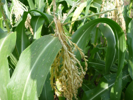 雄花が食害され枯れてしまうと花粉が作れなくなり、雌花の髭から受粉できないのです。