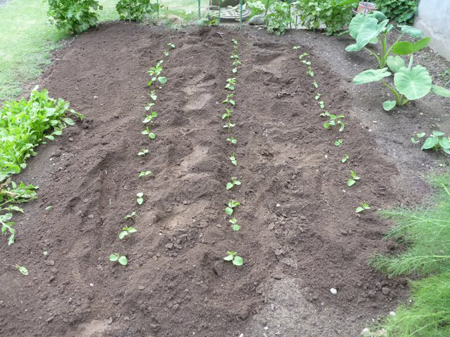 一人で張るのは大変と密集蒔きして移植しました。