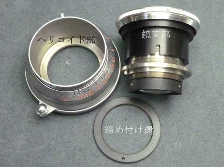 初顔合わせです。糸口はどこからなのでしょうか?定石として締め付け環を外しますとヘリコイド部と鏡筒に分離することが出来ました。