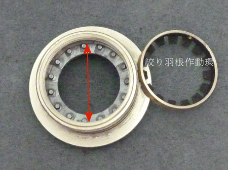 開放位置ですと絞り羽根が絞り室内径より若干外側に組み込まれています。