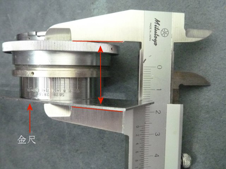 距離環を無限位置にて外し、動かさないようにマウント面と内ヘリコイドの高さを測定しておきます。マウントと内ヘリコイドの外径に違いがありましたので金尺でノギスの測定位置を合わせました。