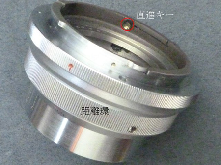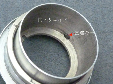 組み込みの際は内ヘリコイドの位置出しをした後、直進キー溝に直進キーを差し込みます。