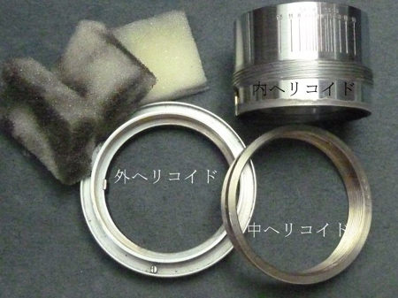 分離した各ヘリコイドはベンジンを含ませたスポンジで線条を清掃致します。