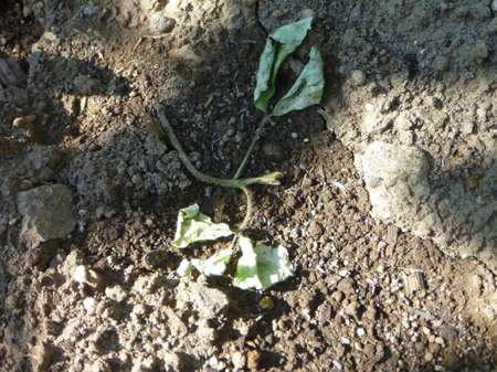 移植した大豆の苗が枯れて転がっています。