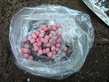 不足分を根小屋の農家から分けて頂きました。ピンク色をしておりますのは忌避剤を塗布してあり、播種後や萌芽の際に野鳥からの食害を防ぎます。