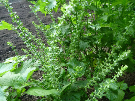 この時期に穂紫蘇を実らせている株がありました。大地の恵みで美味しさをもたらす穂紫蘇です。実を付けたのは気候変動?株の特徴なのでしょうか?採取して来年蒔けば早めの収穫に繋がるのでしょうか?試してみることにします。