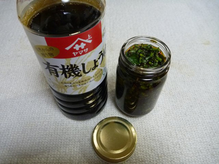 水洗いして笊にて水分を乾燥させます。実を解し瓶に詰め生醤油を注いで暫し待ちますと完成です。刺身・冷や奴・納豆等と何にでも合うのです。