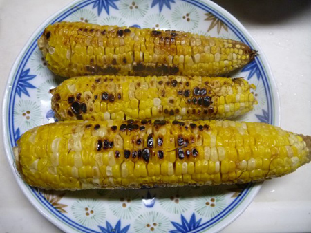 埼玉菜園から持ち帰りましたら娘が焼きトウモロコシが良いと申します。では自分で焼くかと言えば違います。当家の女子衆は人任せで隠居人が焼くことになり、焼き加減を確認しながら位置を変えていきます。生醤油の香ばしさが食欲を誘うのですね!