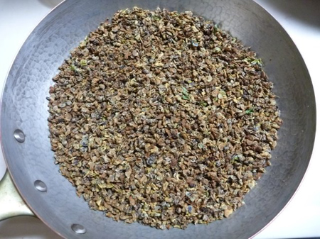 焦がさないようフライパンで焙煎致します。