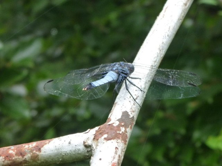 シオカラトンボが羽根を休めていました。頭部正面の色の確認が出来ないのでオオシオカラトンボか判別できない。一般的にはシオカラトンボではと思います。