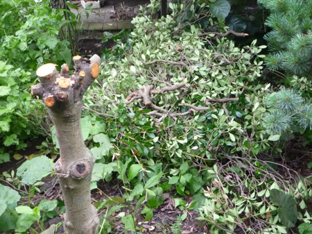 灌木が日照を遮ります。又邪魔な大きさに成長してしまい伐採したのです。