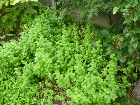 僅か2株のミントが蔓延り放題です。雑草扱いされる所以ですね!