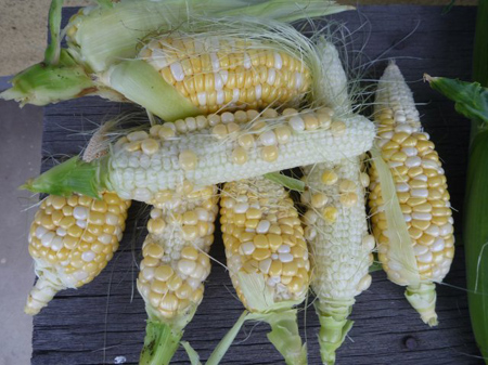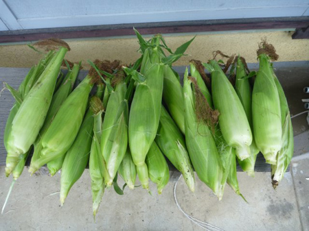 気になっていましたトウモロコシを収穫しました。膨らみ加減を外観から探ると実入りが良くないです。比較的よさげをお隣さんへ持参致しました。