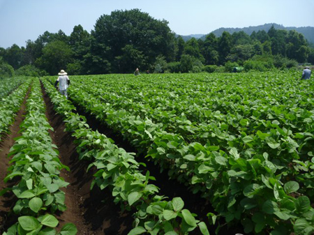 余りの暑さに参加者は数名です。畑で倒れてはシャレになりませんね!