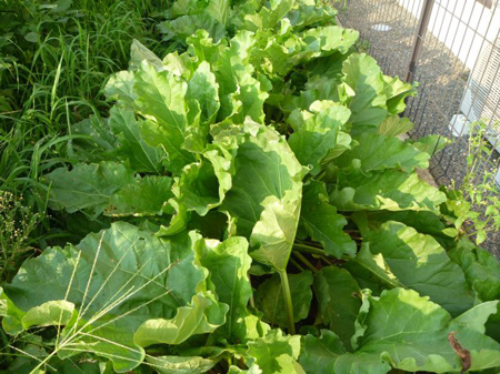 蕗に似たタデ科の多年草ルバーブ。以前の場所は生育が良くなかったが、場所を変えたら生育が良くなったようです。