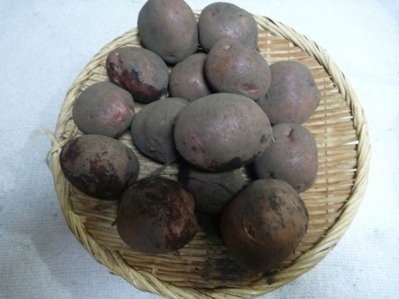 埼玉菜園では連作障害で作付けをやめました馬鈴薯アンデスレッドを頂きました。