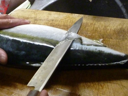 俎板周辺も汚れず、捌く過程で身に鱗がつきませんから食味が宜しいです。
