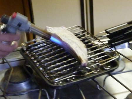 3枚に下ろした腹の部分をバーナーで焼きタタキで味わうことにしました。