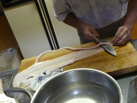 一度骨切りをしたことがあるのです。浅すぎると骨が舌に当たりますし、深すぎると皮まで切ってしまう事になります。上手く切れた時はシャリ・シャリとリズミカルな音曲になります。