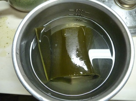 北海道南かやべ産真昆布を水出しして昆布出しを作ります。