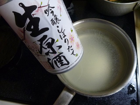 生臭さを消すには日本酒。手持ち無く鳴門松浦酒造の勿体ないお酒を使用してしまいました。