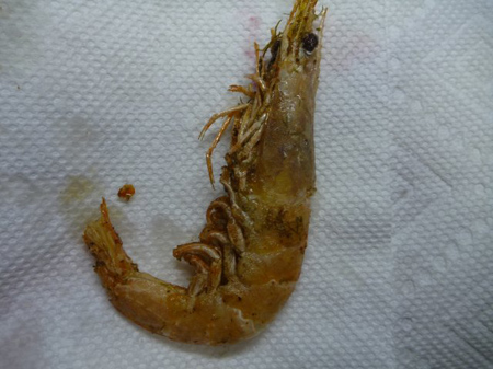 蒸し海老は殻を剥いていまいますね!車海老の仲間と言うことで殻ごと一尾仕込みのお駄賃として特別に味わっちゃいました。