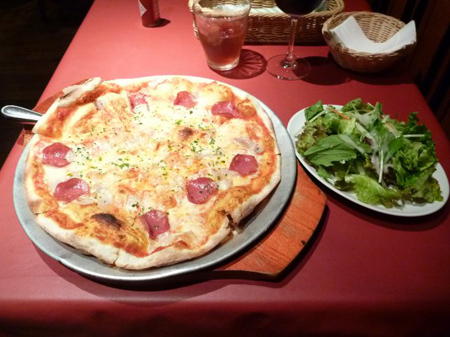 程なく着座出来頼みましたのはBランチ(サラミ&ベーコン:1,200円)ピッツアです。