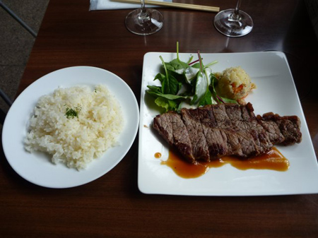 お供はグラス赤ワイン。ステーキはお値段の割りに素材の味を感じました。