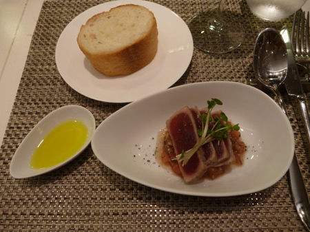 最初は新しい味わい方マグロのタタキ・ケッカソース仕立てでした。