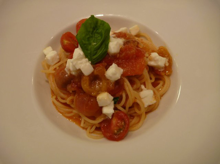 サクランボとプチトマトとモッツアレラチーズのフェデリーニ。