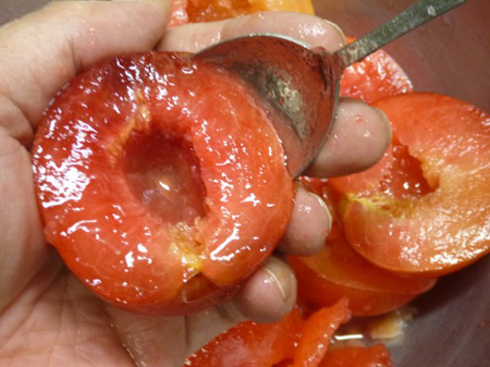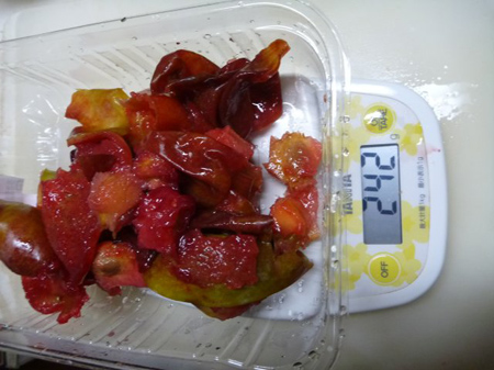 果皮と種の重量が242gですので最終的なプラム重量は1158gとなりました。