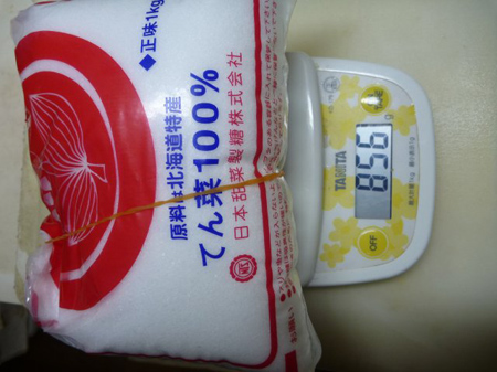 使い残しの甜菜グラニュー糖が総重量の40%に当たりますので、全てを加えます。