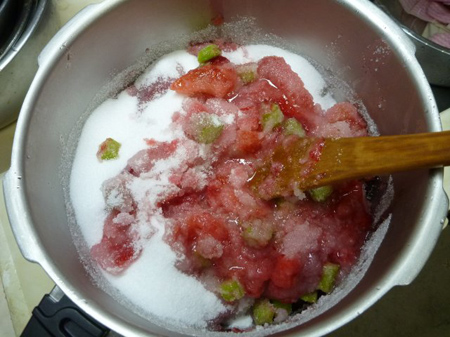 ルバーブ・プラム・甜菜グラニュー糖を混ぜ合わします。