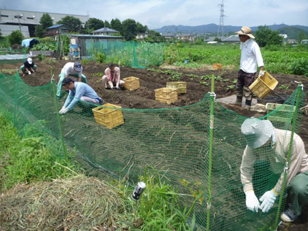 暑さの中、畑仕事の人影を見つけたのです。お話を聞くと共同で作られているとか。。。