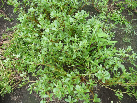 一部の畑では一面スベリヒユの緑の絨毯の様相をしていました。