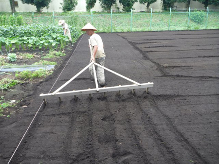 畝間30cmにしましたのは、多少の風でも倒れないようにとの試みと土寄せをしなくても成長が早いので雑草に打ち勝つことです。