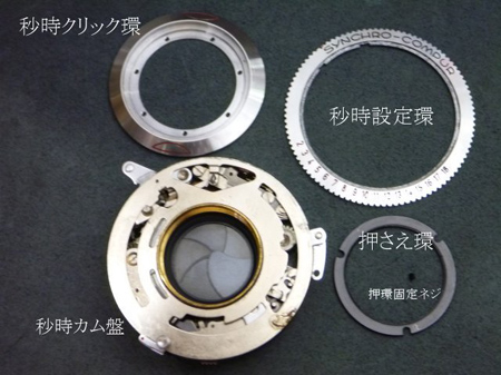 押環固定ネジを外し、押さえ環を外しますと秒時クリック環・秒時設定環と分離できます。