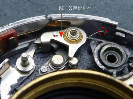 M-X遅延レバーにもバネ(赤○部)が取り付けられており、変形させないように外します。