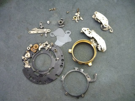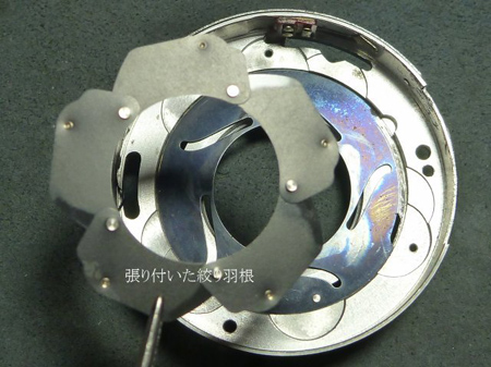 裏蓋側より締め付け環を外しますと、シャター組み品を外すことが出来ました。