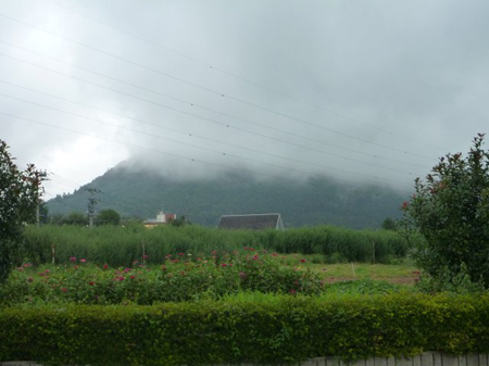 勢いを増し山裾まで下りてきたと同時に雨量ゼロと思われるこまい雨が降り出しました。紐張りを急がねば。。。