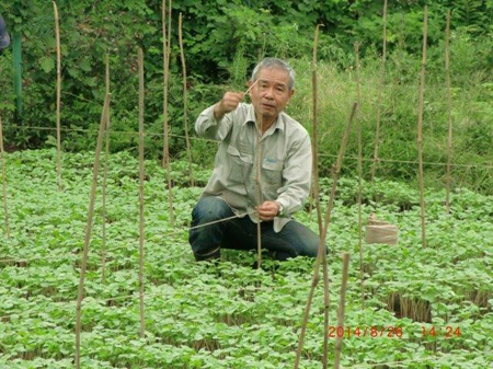 そこで、檜原村方式を取り入れて紐を張り倒伏を防止し収穫へつなげようとしたのです。支柱立てが終わりました。