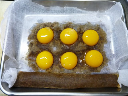1個取り出してみますとプリンプリンの黄身が箸で挟める硬さになっていました。