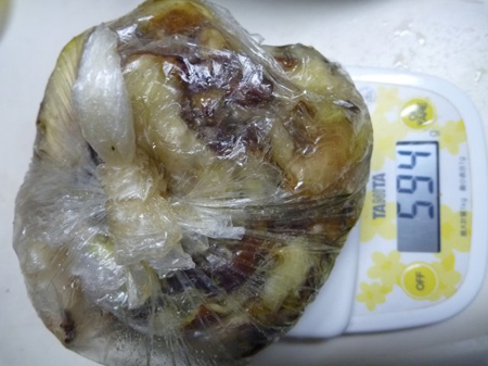 皮を含め破棄した重量が594gで総重量が1566gでしたから、実質972gになってしまいました。