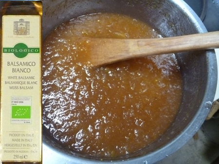 そこで、白バルサミコ酢を小匙1杯ずつ加え、味見をしながら都合3杯加えたのです。気持ち緩和された気がします。効果の程は分かりませんが、結果良し、と言うことにしましょう。