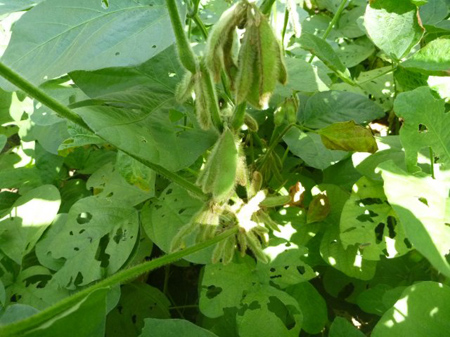 子供達にとりましては可愛い遊び相手オンブバッタ。でも家庭菜園や農業従事者にとりましては葉を食害する害虫です。沢山穴を開けられてしまいました。