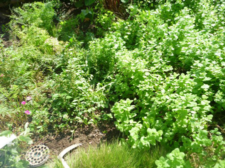 サザンカにはなるべく近寄らないようにして雑草と蔓延りましたミントを除くことにしました。